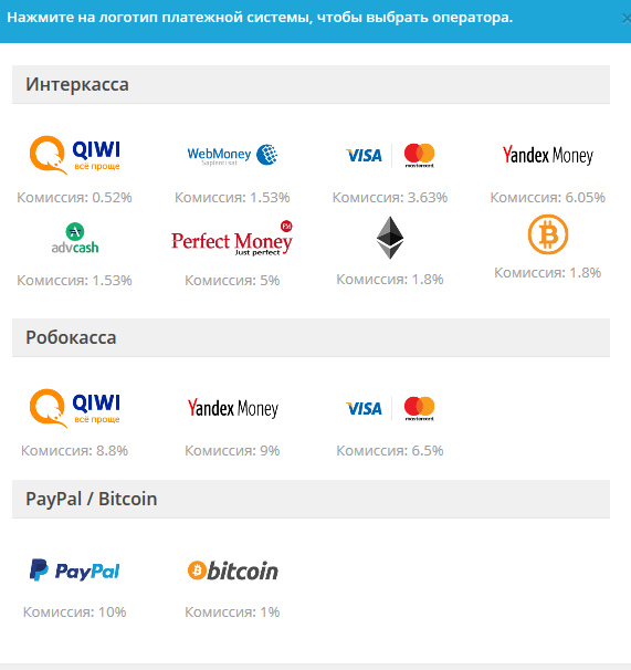 Обратите внимание, что у сервиса есть комиссия, и она разная на разных платежных системах.