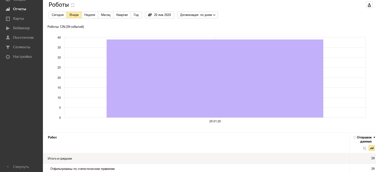 Скриншоты Яндекс Метрики прикладываю по дням вместе с Роботностью.