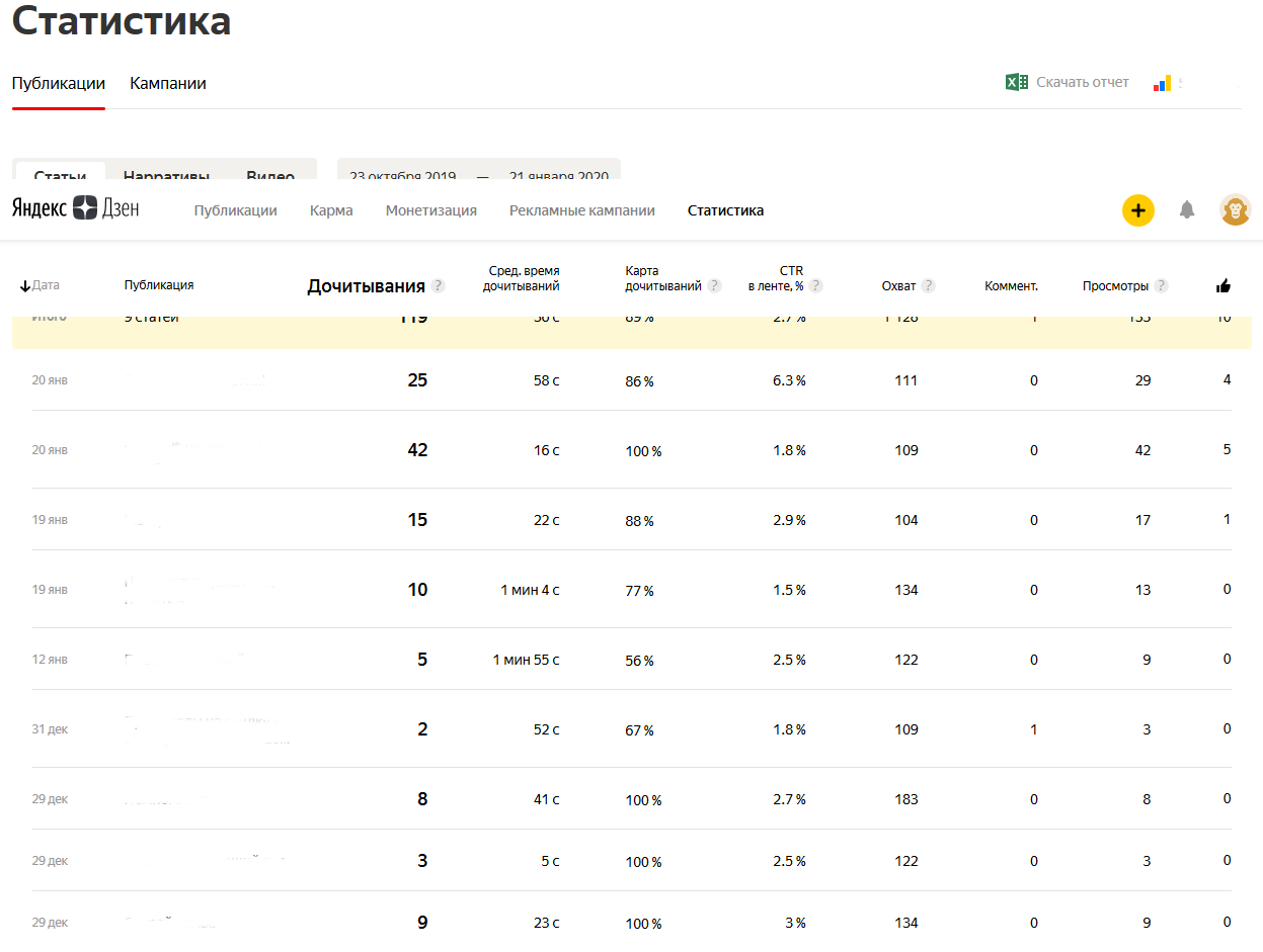 В итоге на статью просмотров 119, дочитываний 4