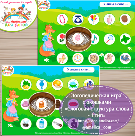 Логопедическая игра с окошками на слоговую структуру 1-14 тип от Амелики [@shop.amelica.com]