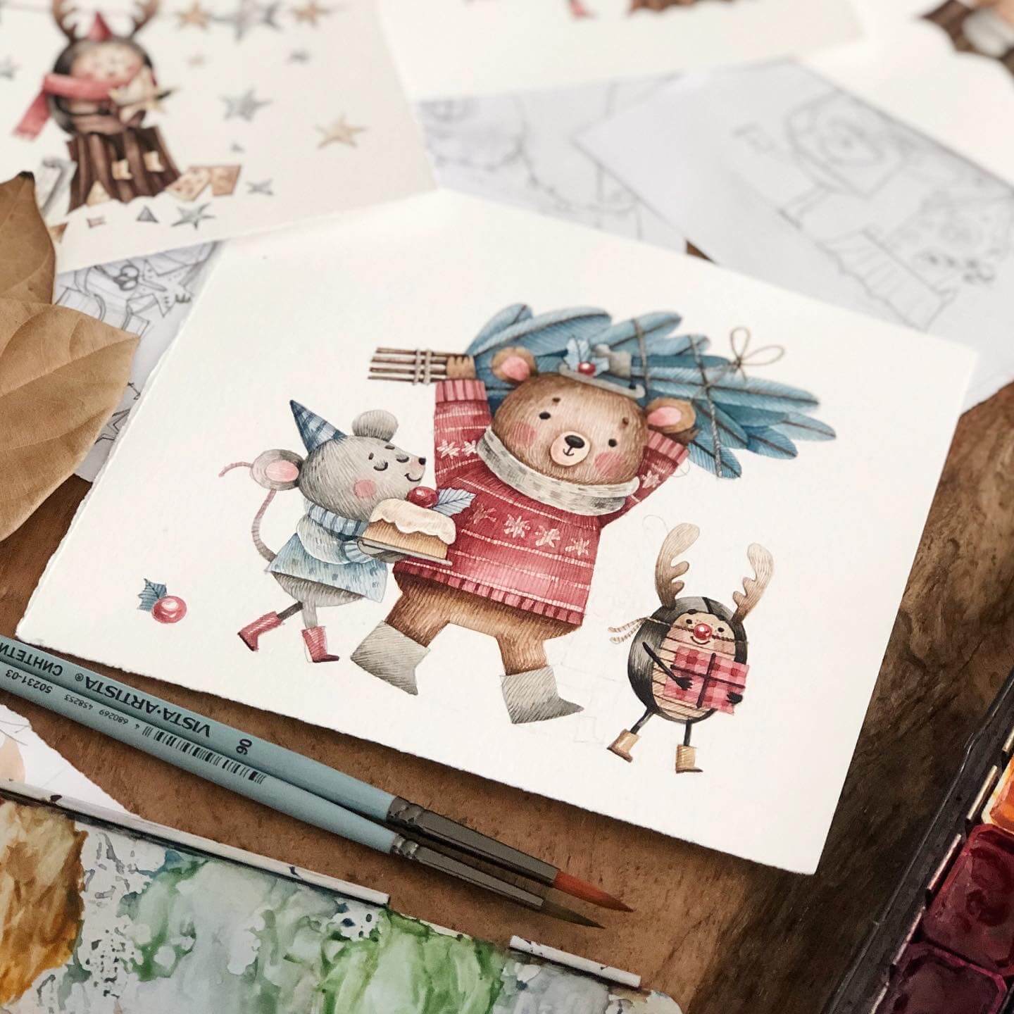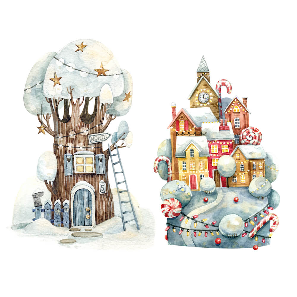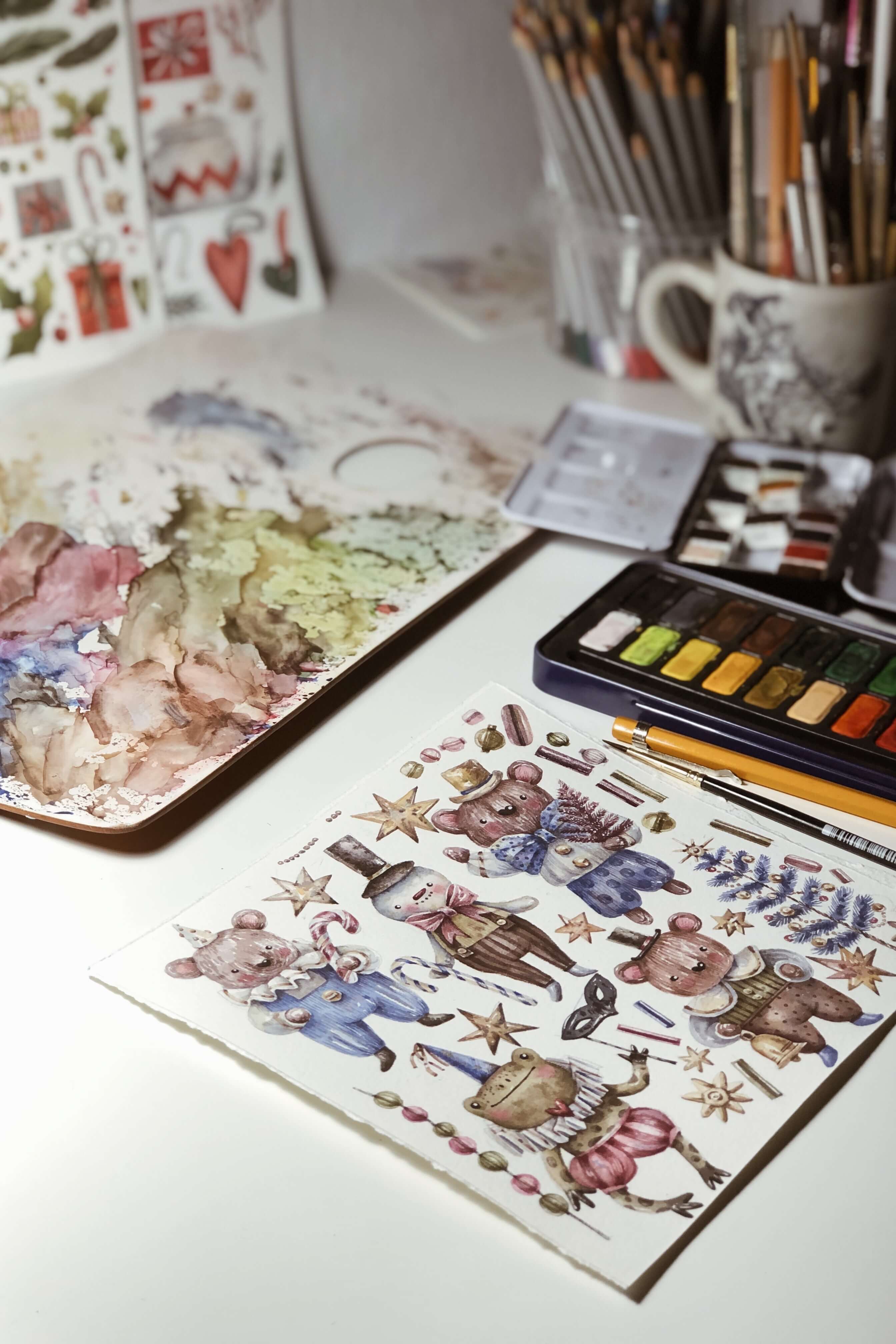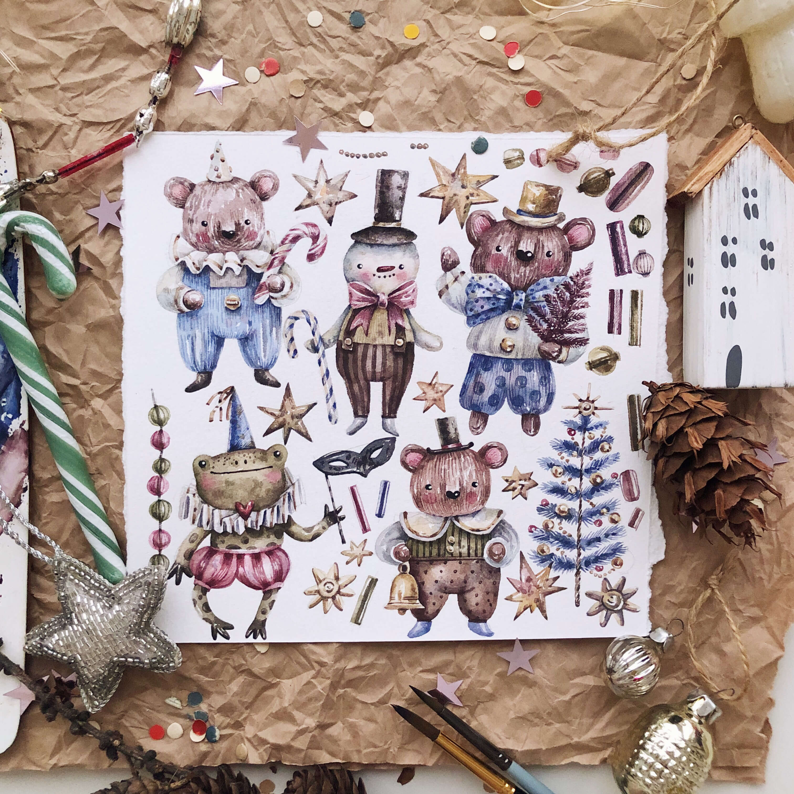 Новогодняя коллекция. Рисуем персонажа и предметы в винтажном стиле акварелью [lectoroom] [Тоня Ткач]