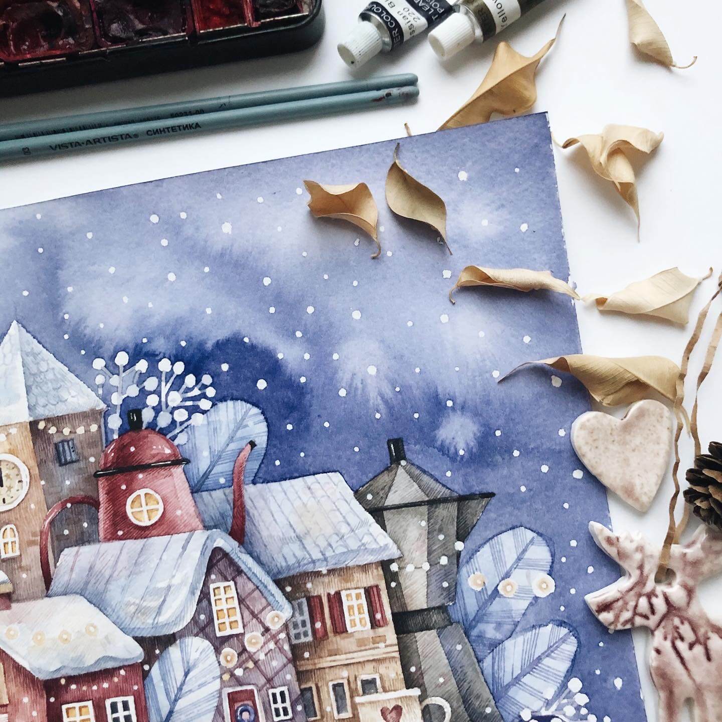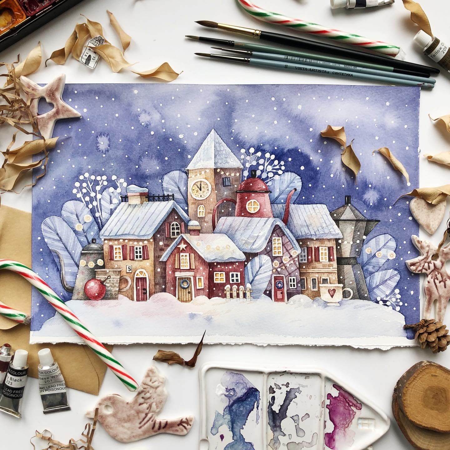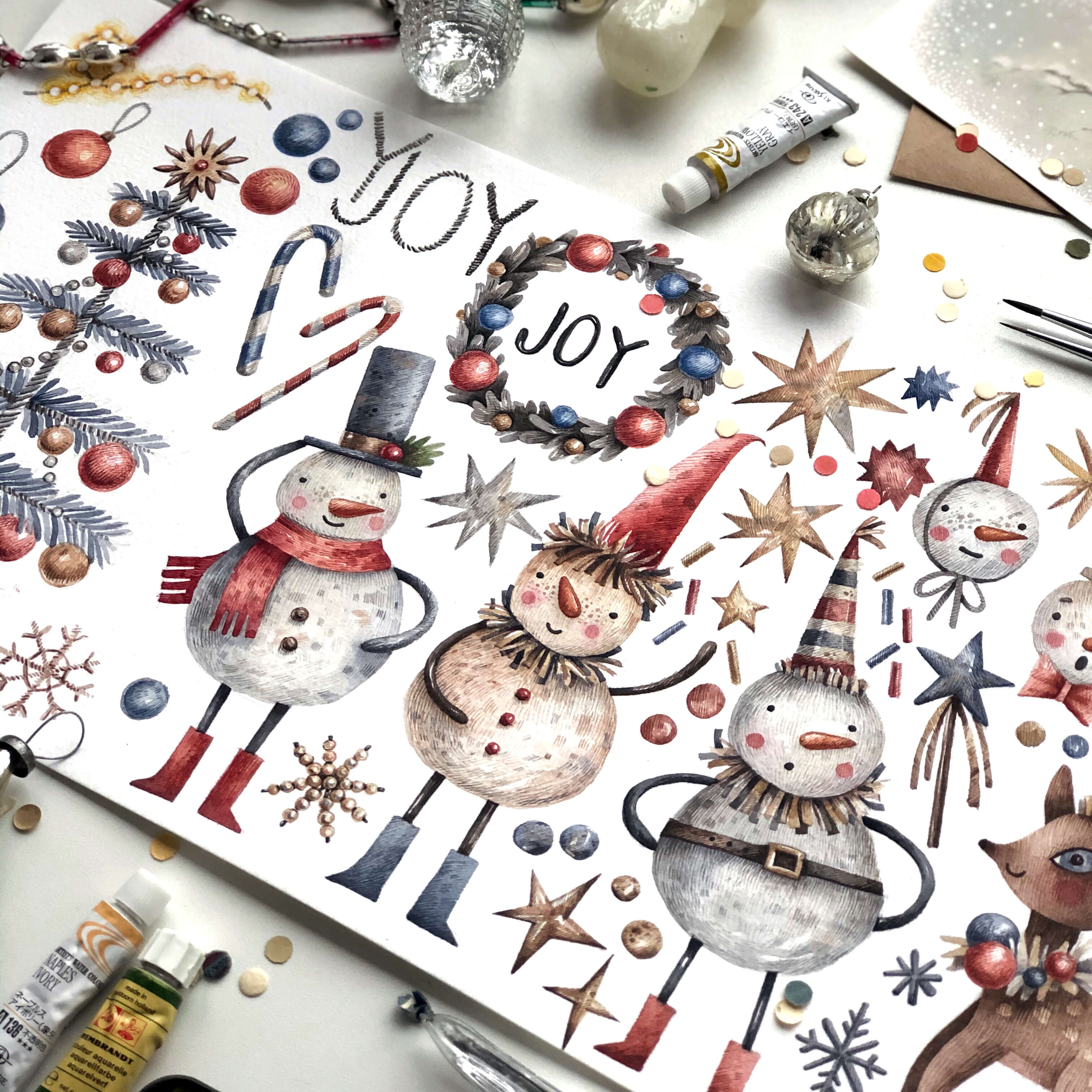 Новогодняя коллекция. Рисуем персонажа и предметы в винтажном стиле акварелью [lectoroom] [Тоня Ткач]