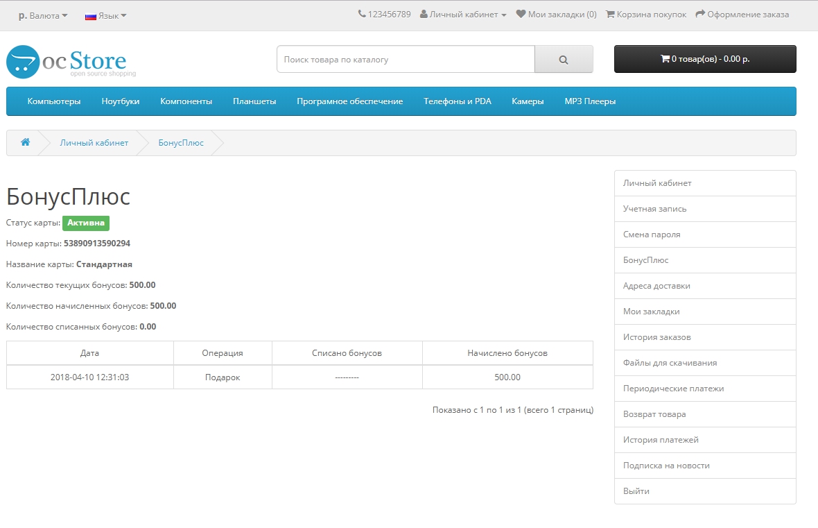 [Opencart] Модуль Neoseo программа лояльности от "Бонус Плюс" v.6 + v.7 (OC3) [открытый код]