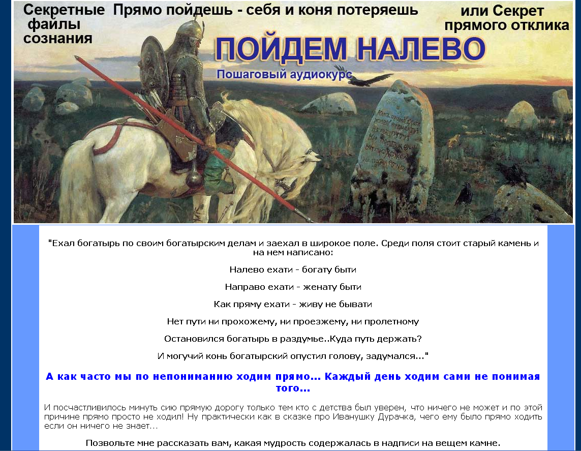 Секретные файлы сознания. Прямо пойдешь - себя и коня потеряешь при Секрет прямого отклика [Инесса Власова]