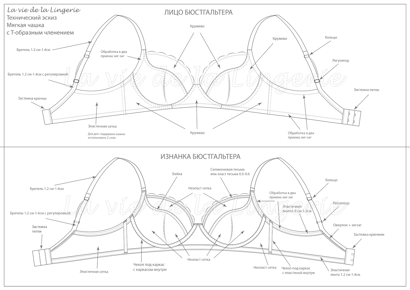 [Шитье] Бюстгальтер мягкая чашка c Т-образным членением [la_vie_de_la_lingerie]