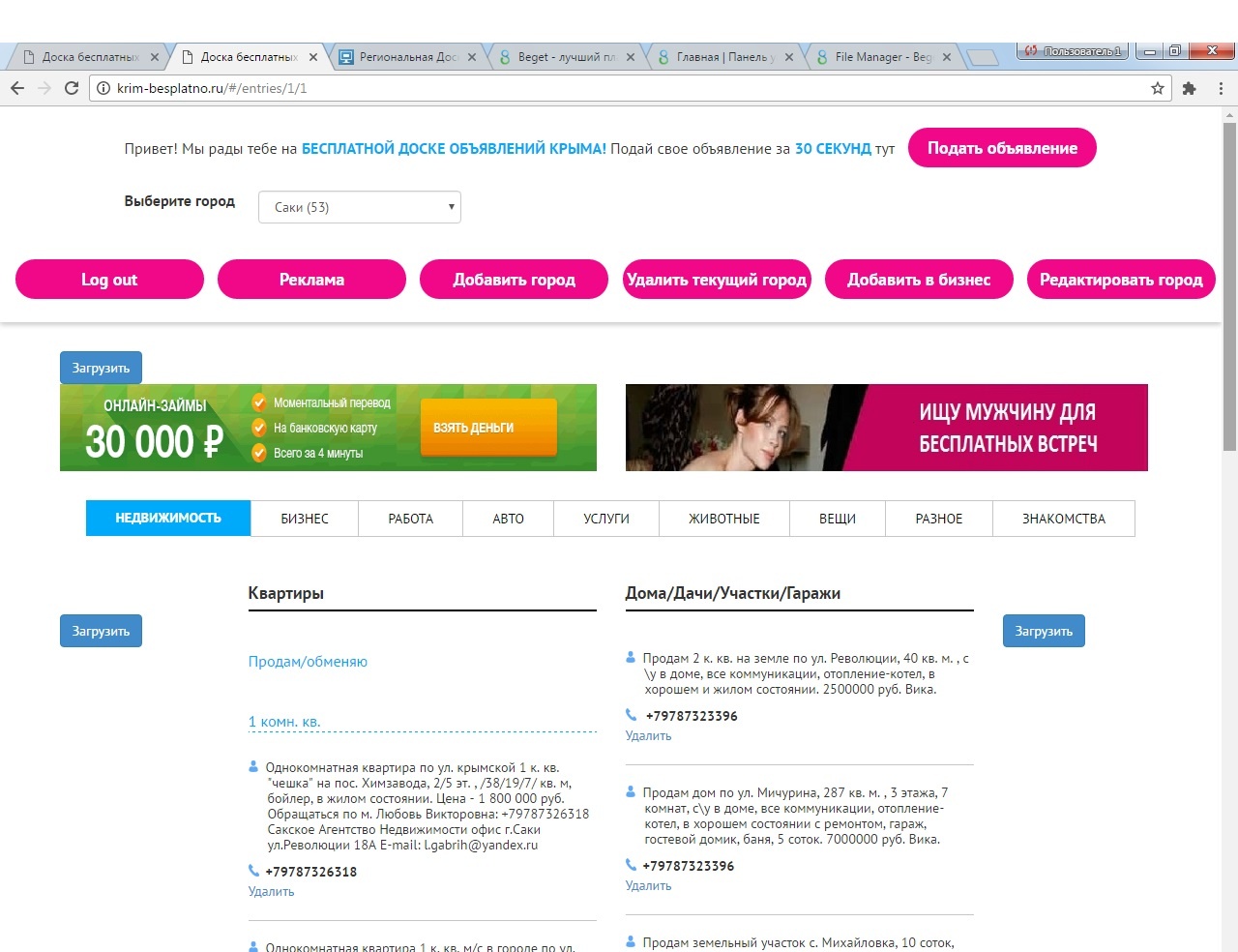 Скрипт региональной доски обьявлений