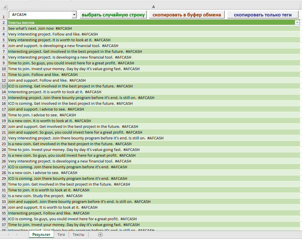 Таблица excel для быстрого создания отчетов баунти по тв и фб