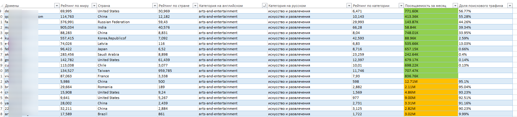 ТОР-База сайтов Similarweb из 22 разделов