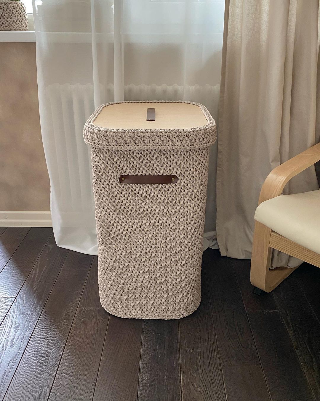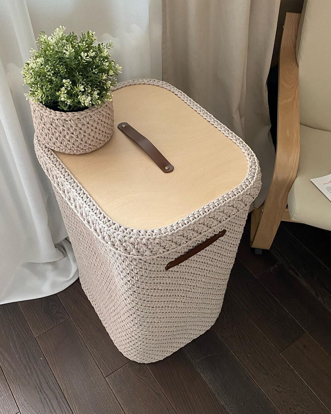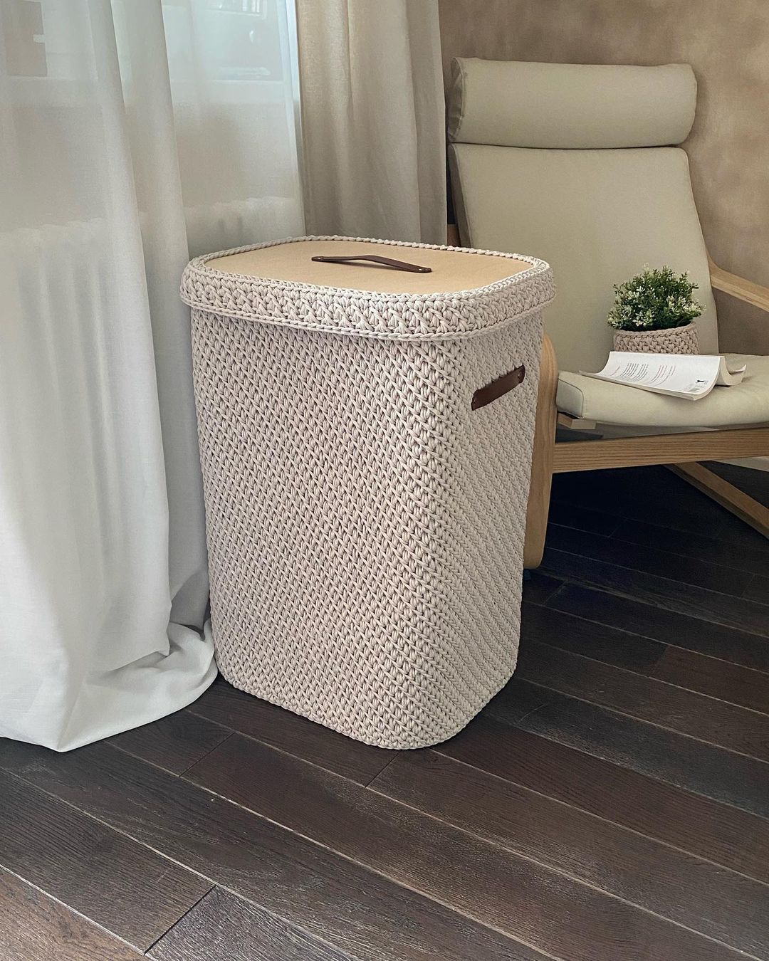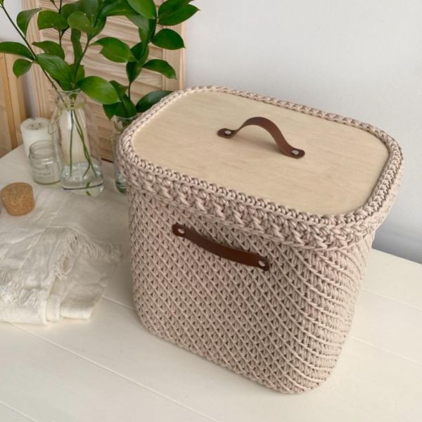 [Вязание] Прямоугольная корзина со скругленными углами. С деревянным дном и крышкой [_my_mari]