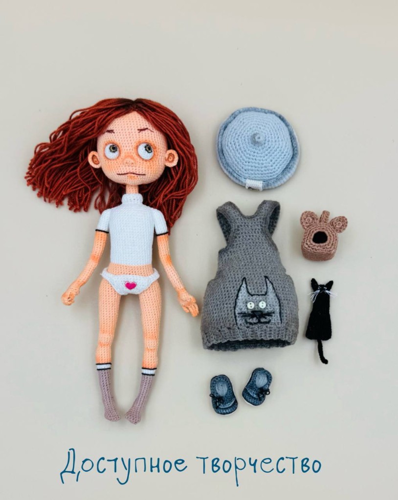[Вязаные игрушки] Девочка с кошкой [Елена Шаповалова]