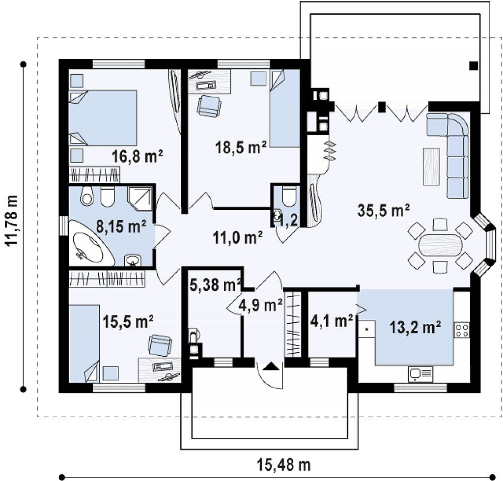 Z10 - Одноэтажный дом с многоскатной кровлей (жилая площадь 134,3 м²)